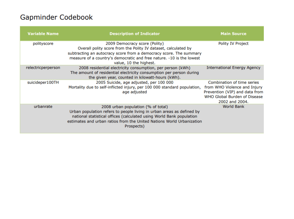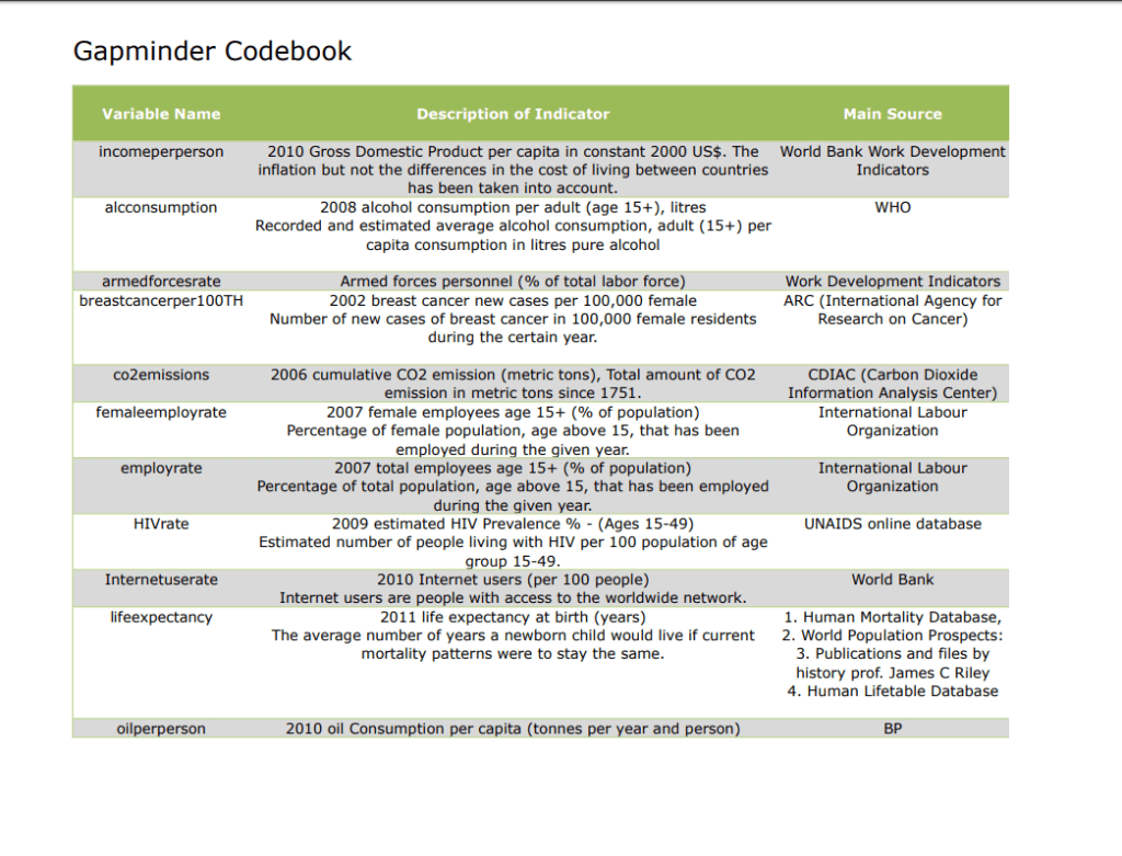 I’m going to be doing an analysis on the Gapminder dataset. I’ll be looking at the relationship between the internet usage rate and the life expectancy variables, as well as the association between internet usage and employment rates.