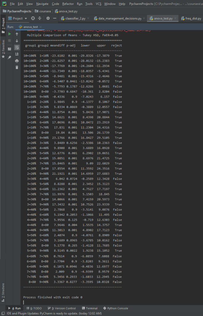 We now make recode dictionaries and set up crosstab calculations for four different tests. We’ll only be testing four different comparisons here, just as a proof of concept and to demonstrate that we know to carry out the calculations.